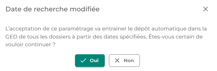 Dès lors qu'une date de déclenchement est renseignée, la totalité des dossiers à partir de cette date sera déposée en GED.