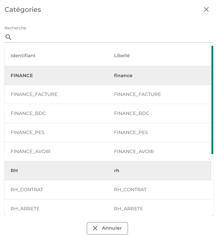 En cliquant sur le libellé "Non défini", une fenêtre s'ouvre, permettant de sélectionner la bibliothèque GED à laquelle sera associée la nature iXBus :