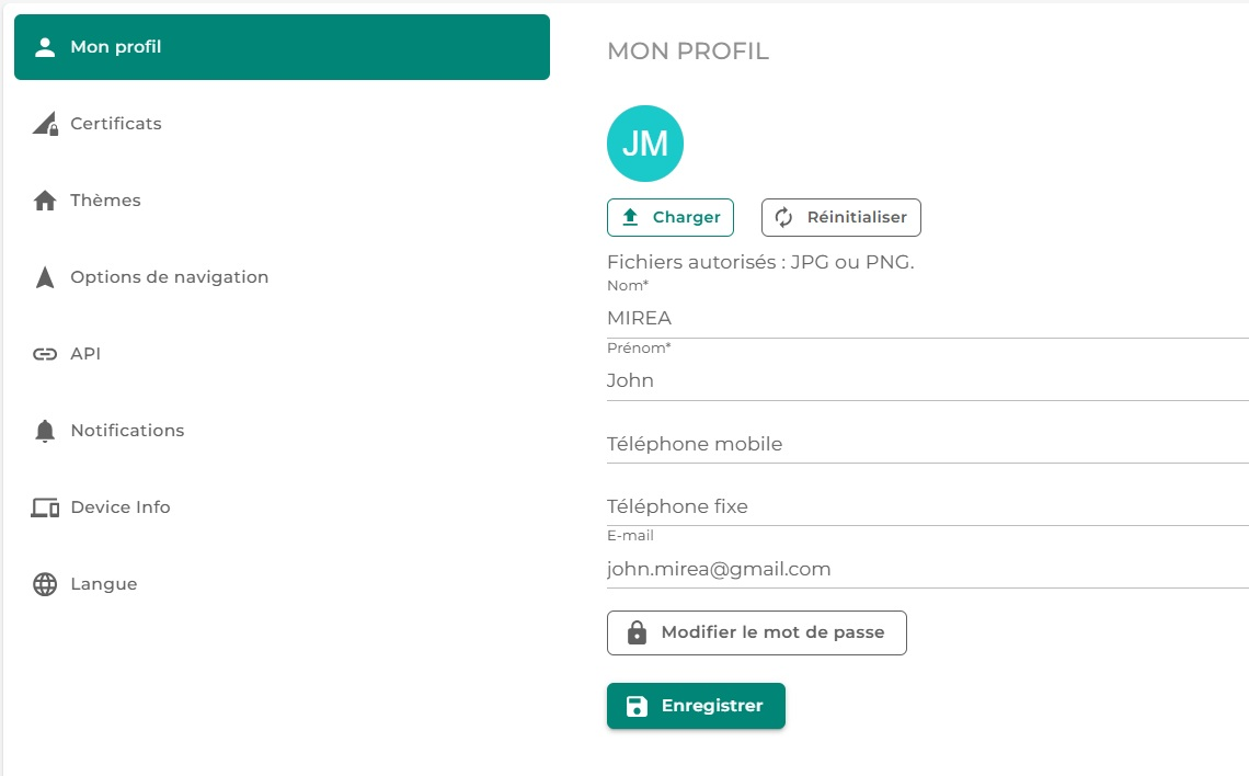 Vous pouvez également charger une image de profil ou modifier votre mot de passe.