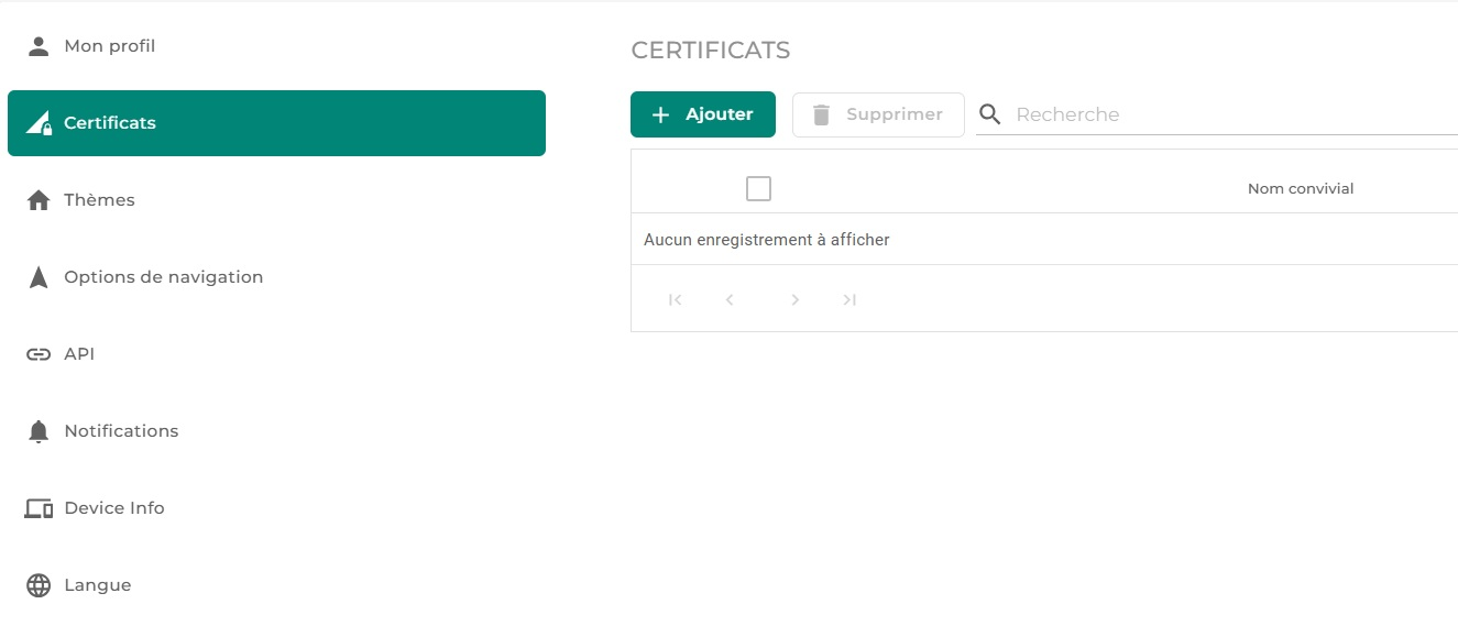 Afin d'ajouter un nouveau certificat, cliquez sur « Ajouter ».