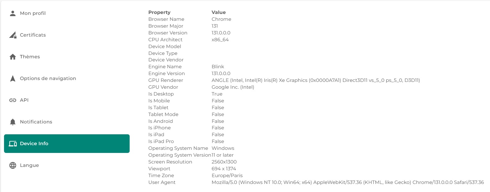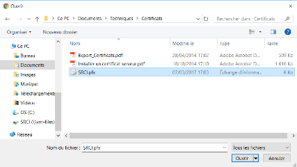 Les certificats enregistrés ici nécessitent de pouvoir être exportés au format PFX.