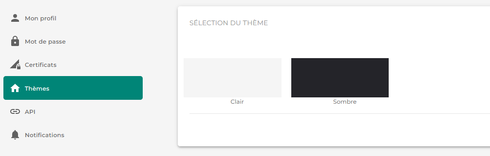 Vous pouvez sélectionner un thème clair ou un thème sombre de votre application.