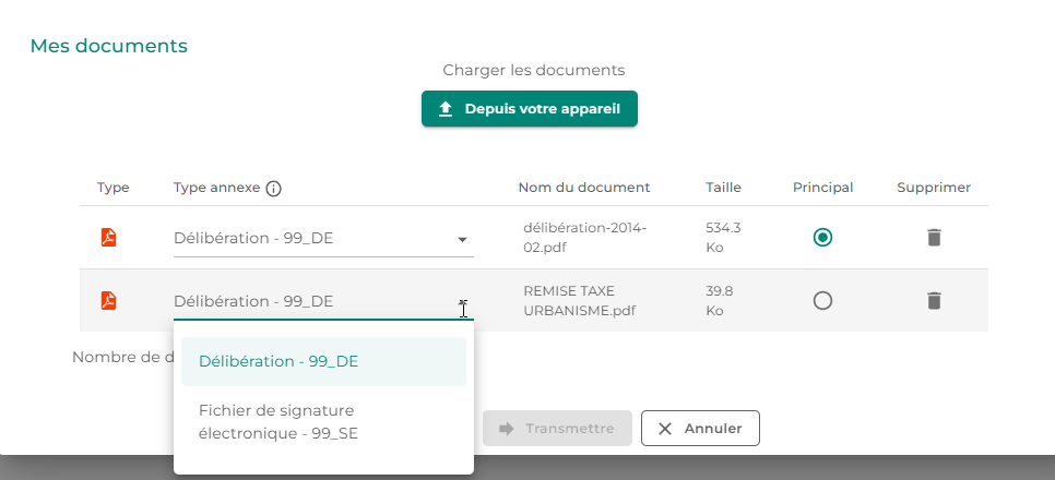 Le protocol @CTES 2.2 impose que chaque document doit maintenant être typé avec un code pièce jointe. Cela se matérialise par une nouvelle liste déroulante à compléter lors de l'insertion des documents sur le dossier.