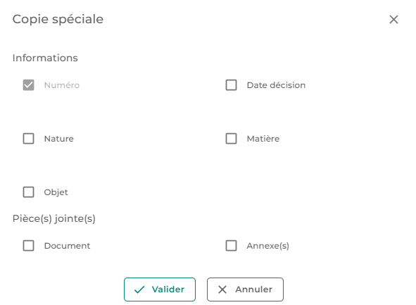 - Vous pouvez également créer une copie spéciale. Dans ce cas, une nouvelle fenêtre s'ouvrira vous permettant de sélectionner les critères à conserver.