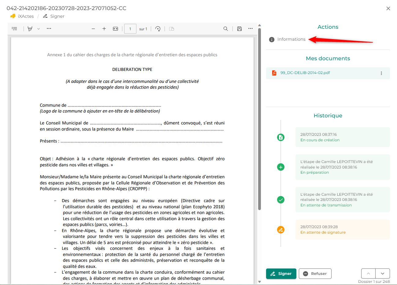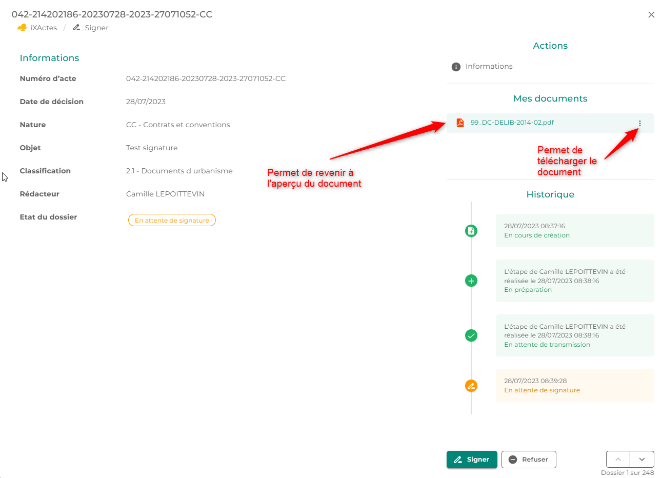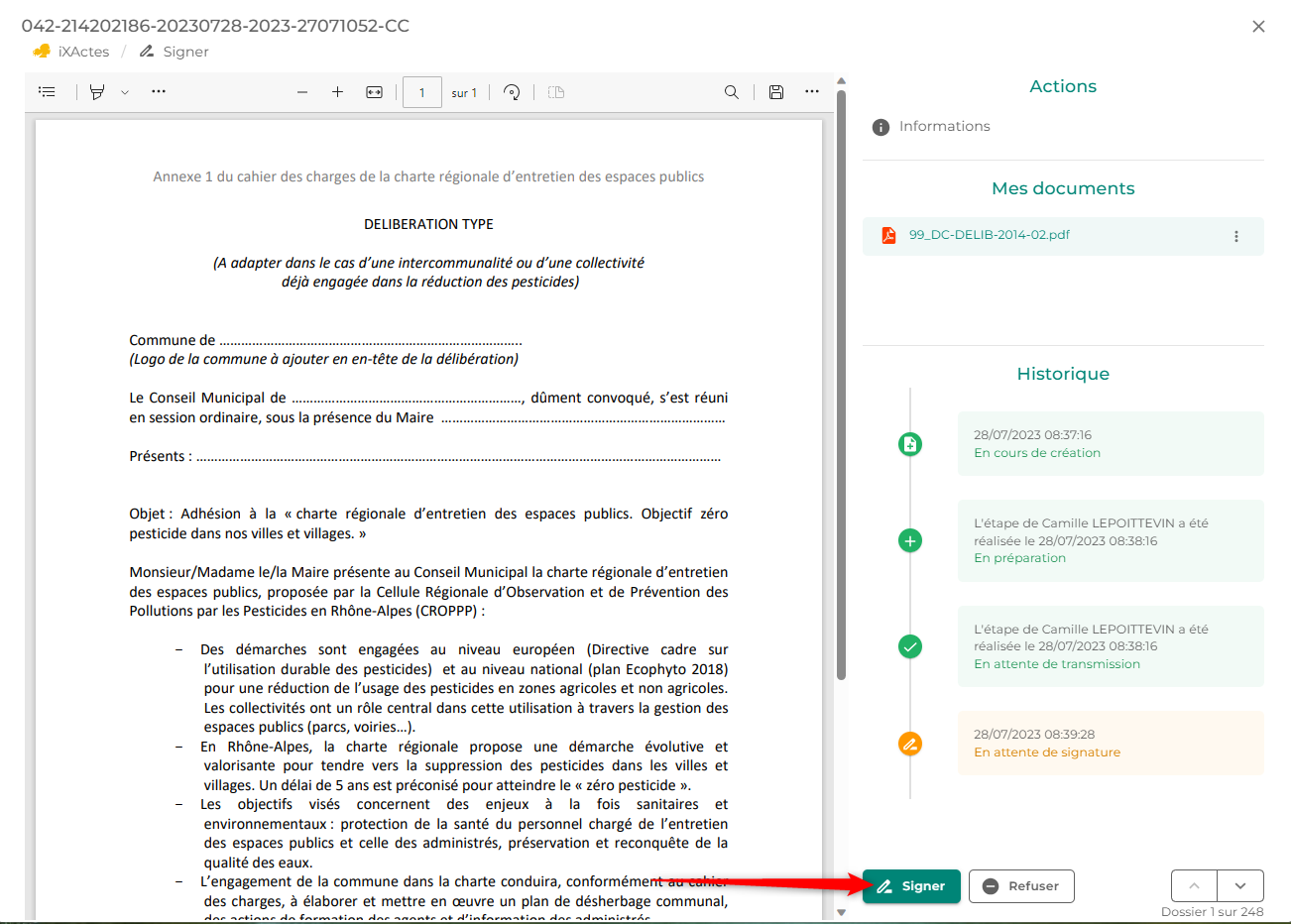 Si vous étiez sur l'aperçu de l'acte et que vous avez d'autres actes à signer, l'aperçu de l'acte suivant s'ouvrira automatiquement.