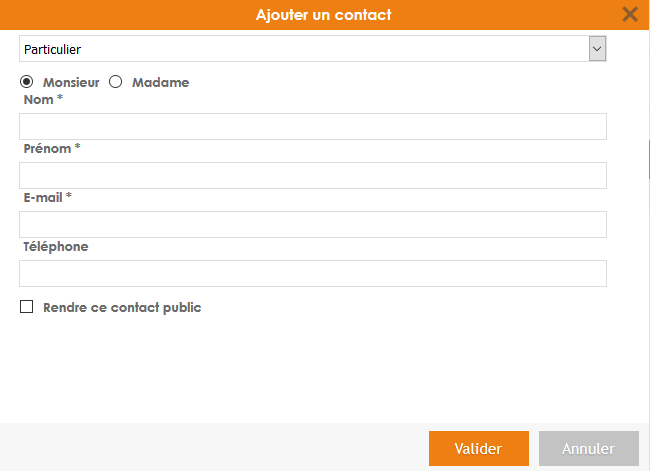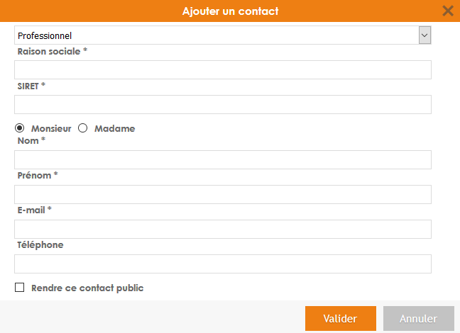Vous pouvez saisir un contact particulier ou professionnel. Selon ce choix, les données proposées seront mises à jour.