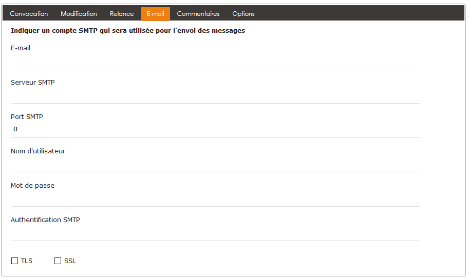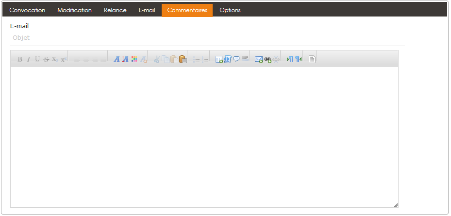 Il est possible d'envoyer un E-mail lorsqu'un destinataire ajoute un commentaire à la convocation. Pour paramétrer le message, cliquez sur le cinquième onglet.
