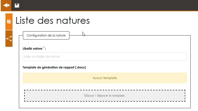 Afin de créer une nature de formulaire, cliquez sur l'icône