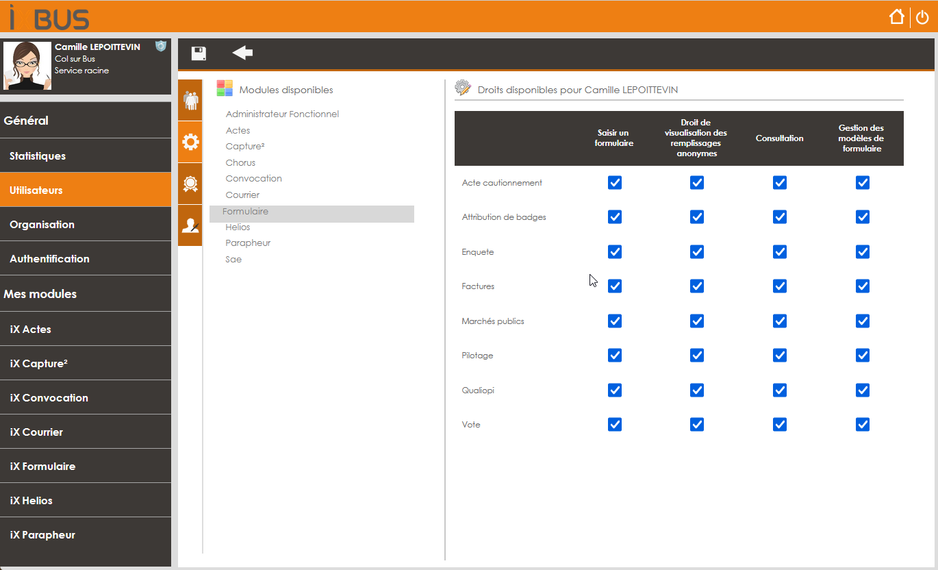 N.B. : Ce droit est nécessaire pour tous les formulaires pour lesquels une authentification iXBus a été réclamée.