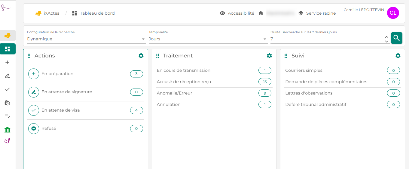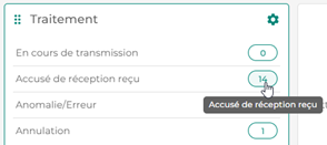 Exemple ici, en cliquant sur 14, j'accèderai au menu Historique avec un filtre activé sur les actes pour lesquels l'accusé de réception aura été reçu.