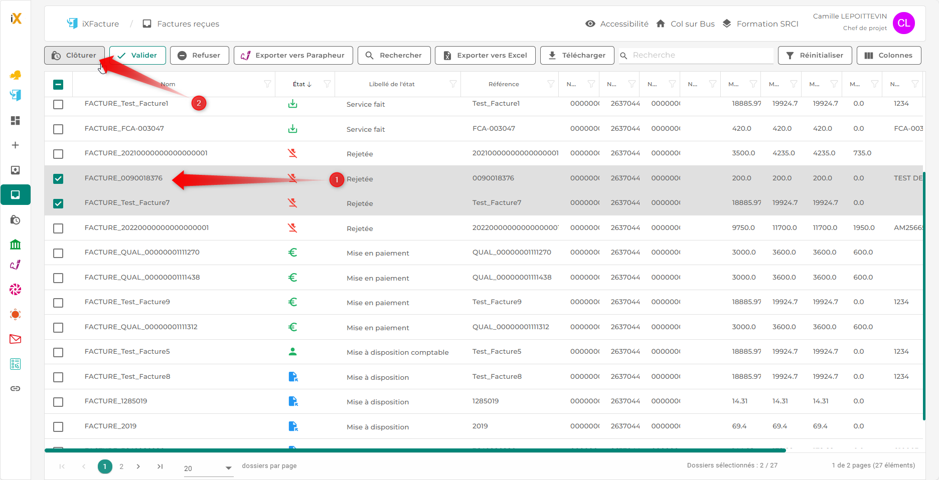 Cochez les factures que vous souhaitez clôturer puis cliquez sur .