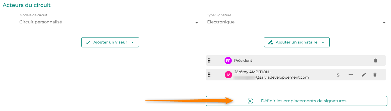 S'il s'agit d'un document PDF sur lequel les tags de signature sont absents, vous pourrez les placer manuellement via l'option Définir les emplacements de signature.