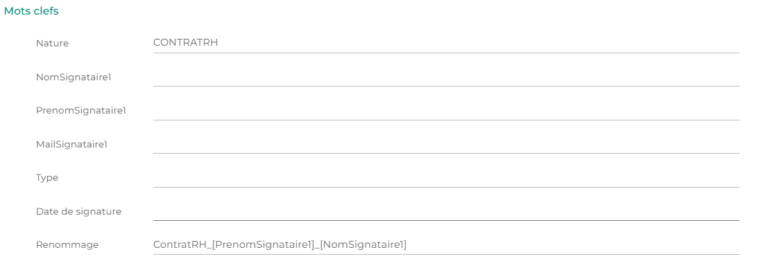 Il est aussi possible de compléter ces informations via les mots clefs paramétrés dans la nature de document iXParapheur.