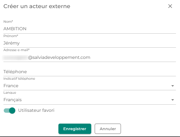 La liste Mes favoris contient les acteurs externes que vous avez vous même enregistré. Vous ne pourrez pas partager votre liste ou récupérer ceux d'un autre utilisateur iXBus.